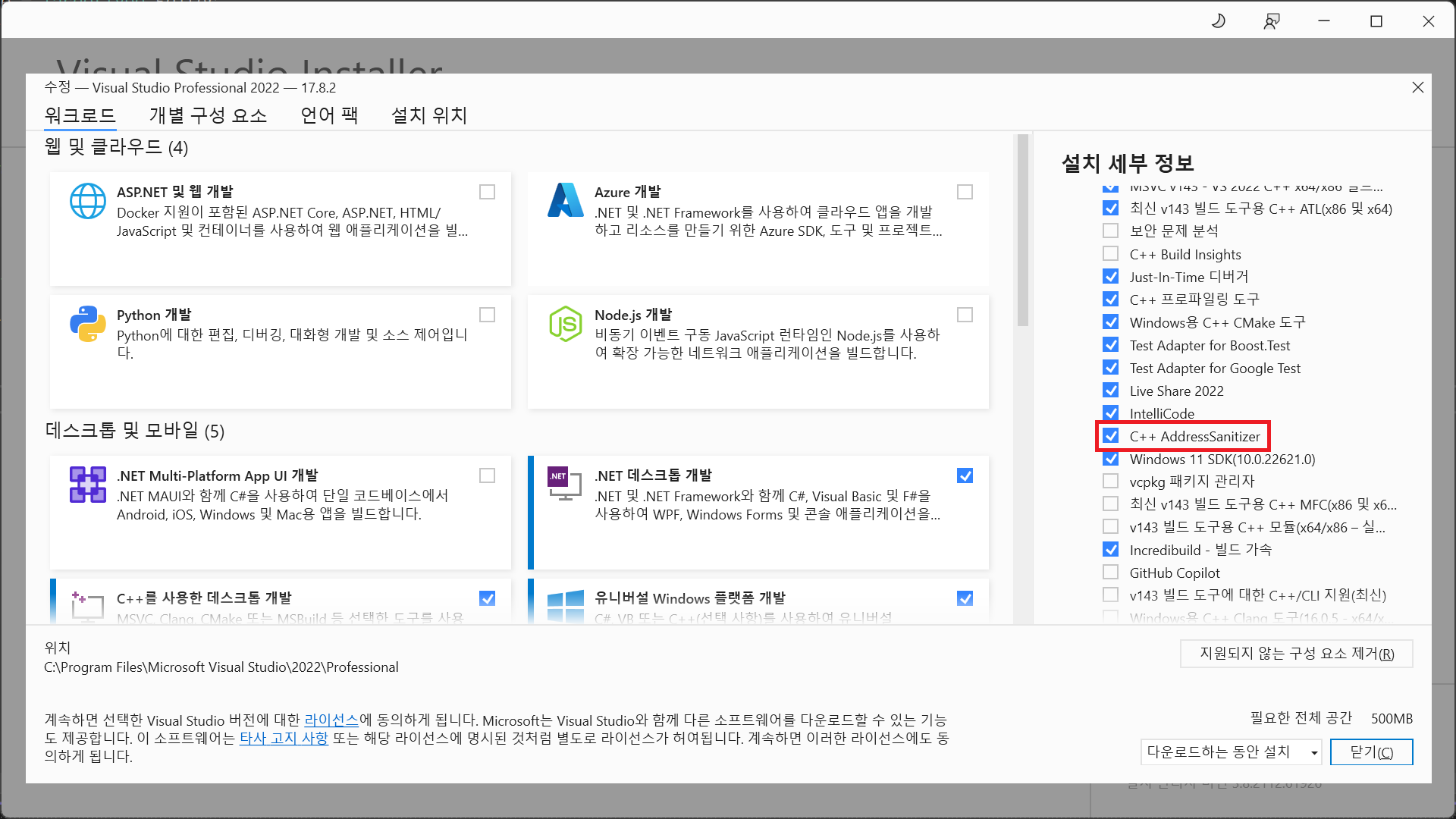 Address Sanitizer 의 자세한 내용은 MSVC 도움말을 참고하자.