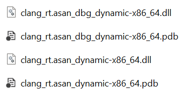 clang_rt.asan_dynamic-x86_64.dll 를 로딩 할 수 없어서 문제가 생긴것이다. Visual Studio 설치에 C++ AddressSanitizer 가 적절히 선택되어 있다면 문제 없지만 선택되어 있지 않다면 설치해준다.